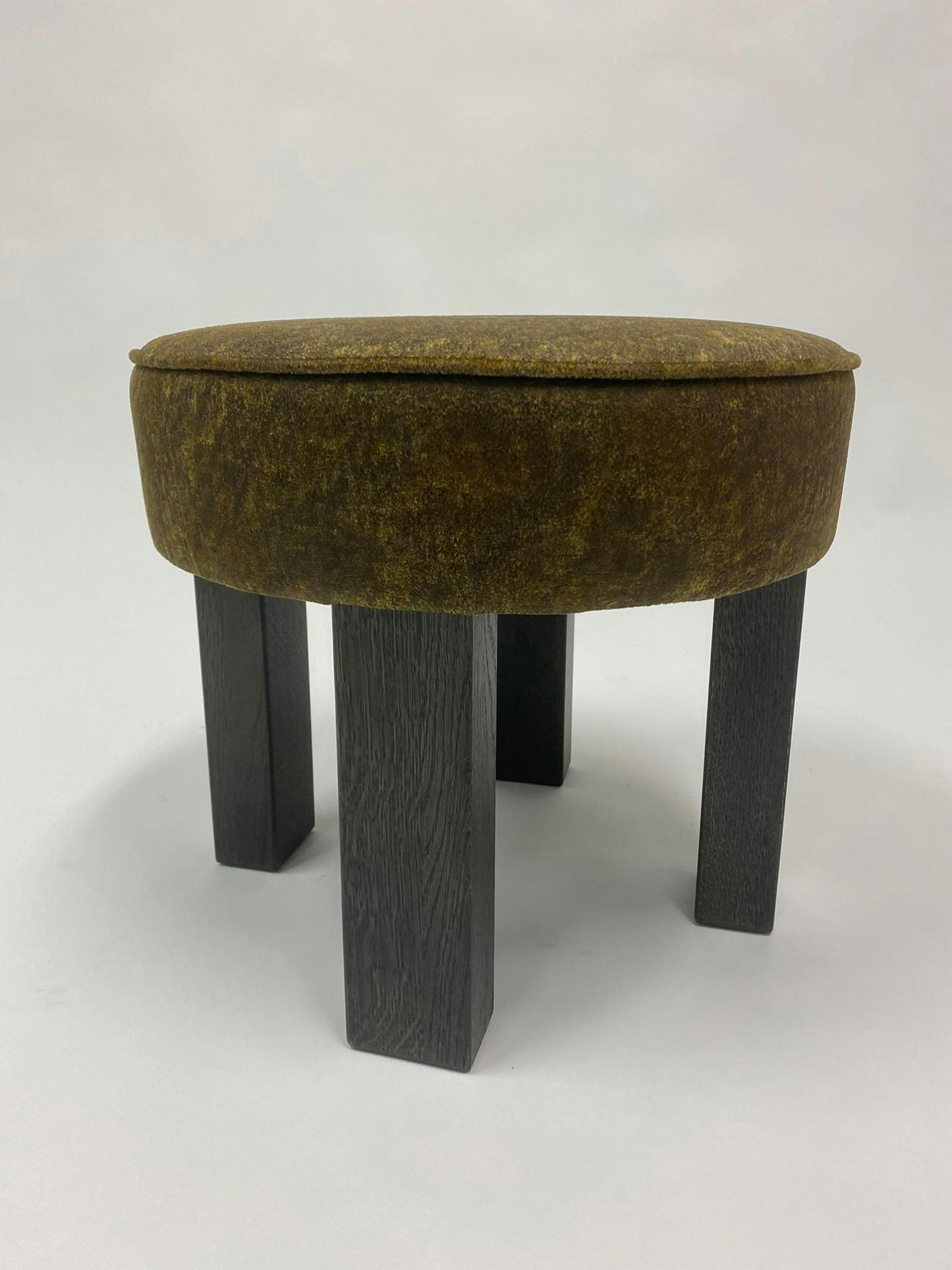 Součástí setu je také stolička, která je nově vyrobenou replikou Halabalova původního návrhu. Konstrukce je z bukového masivu, sedák je čalouněn stejnou látkou jako křeslo, takže celek působí harmonicky a poskytuje plný komfort při sezení.