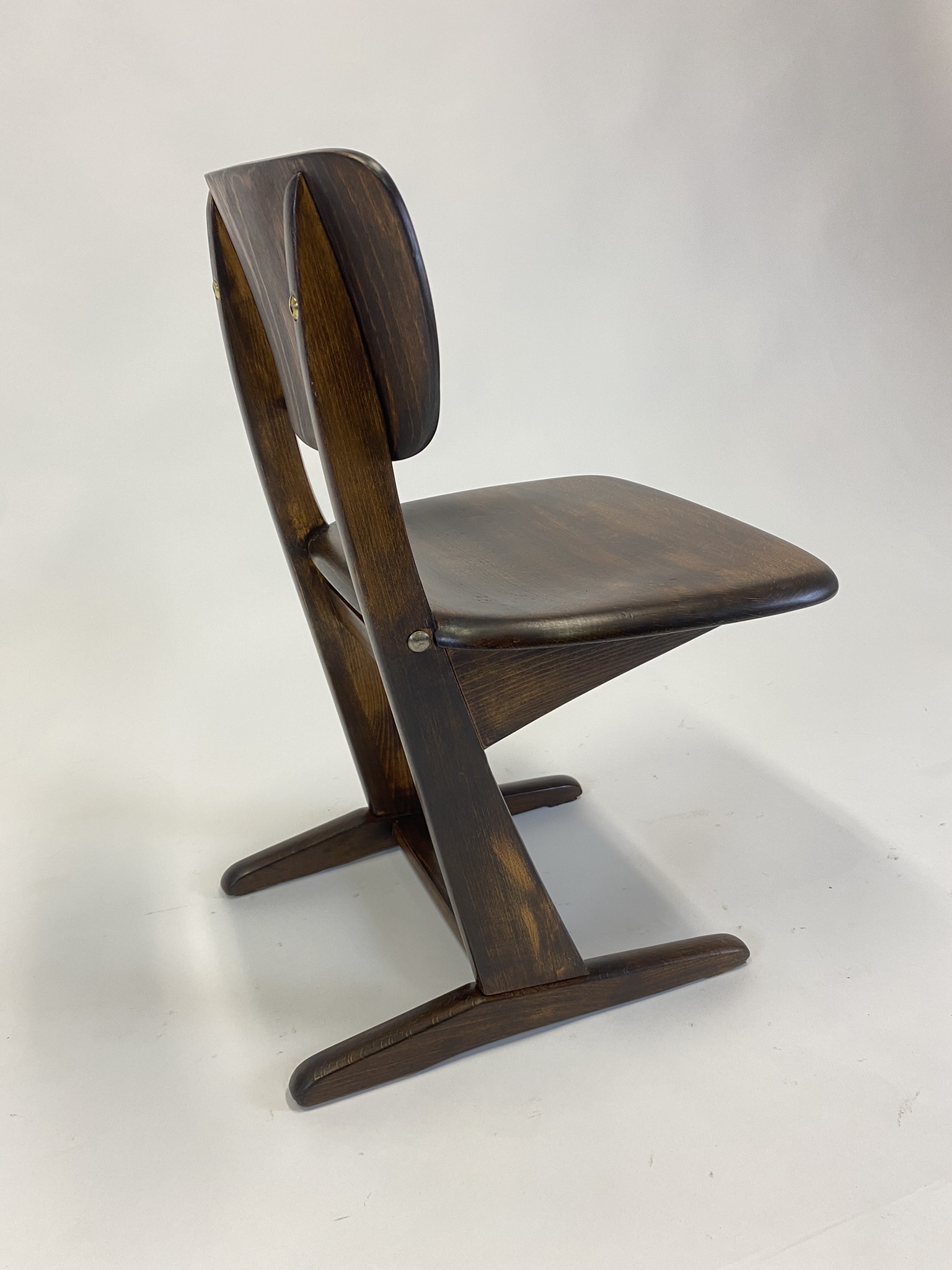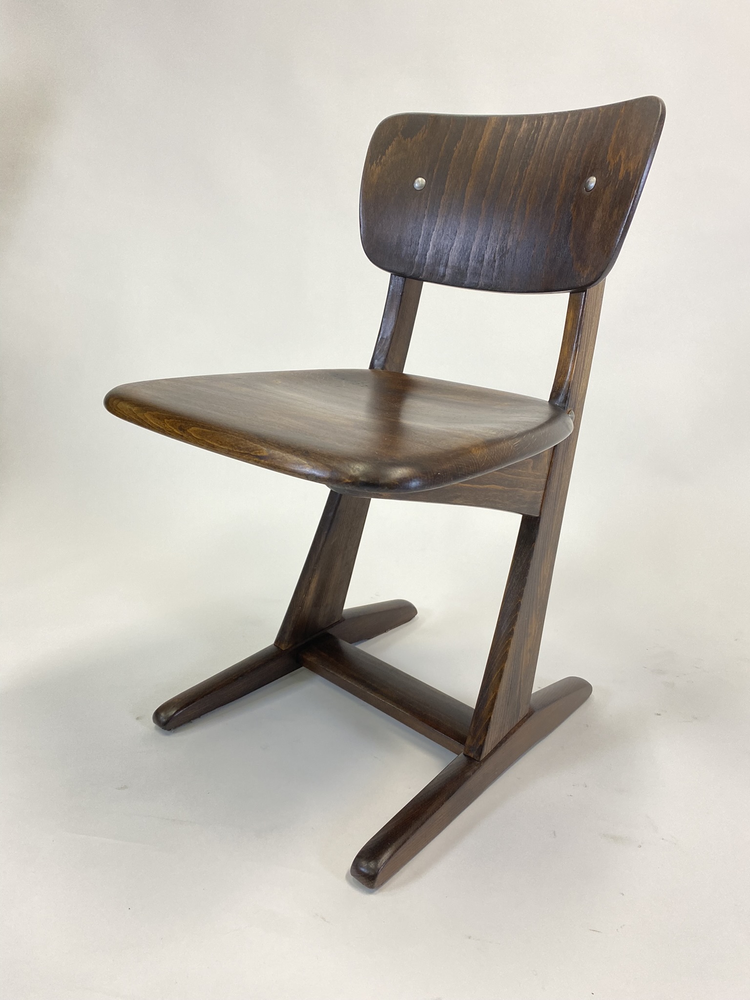 Tato dětská židle pochází z dílny německé značky Casala, která se specializovala na výrobu školního a veřejného nábytku. Její autorem je Karl Nothhelfer, designér, jehož práce z 50. let vycházela z principů Bauhausu – důraz na funkčnost, pevnost a jednoduché tvary.