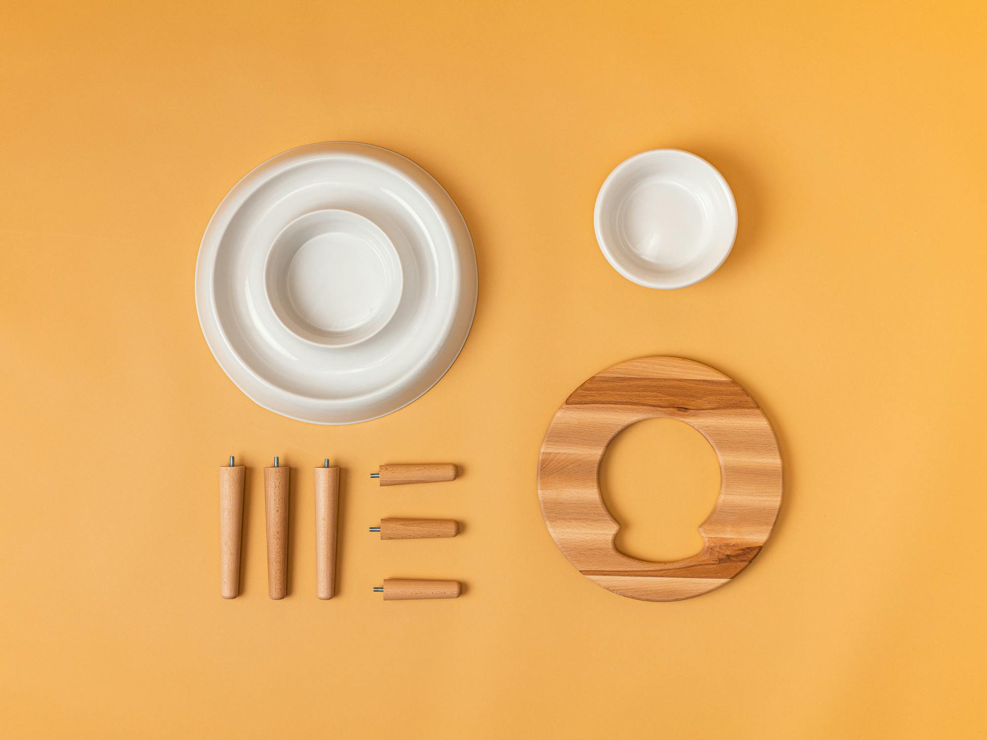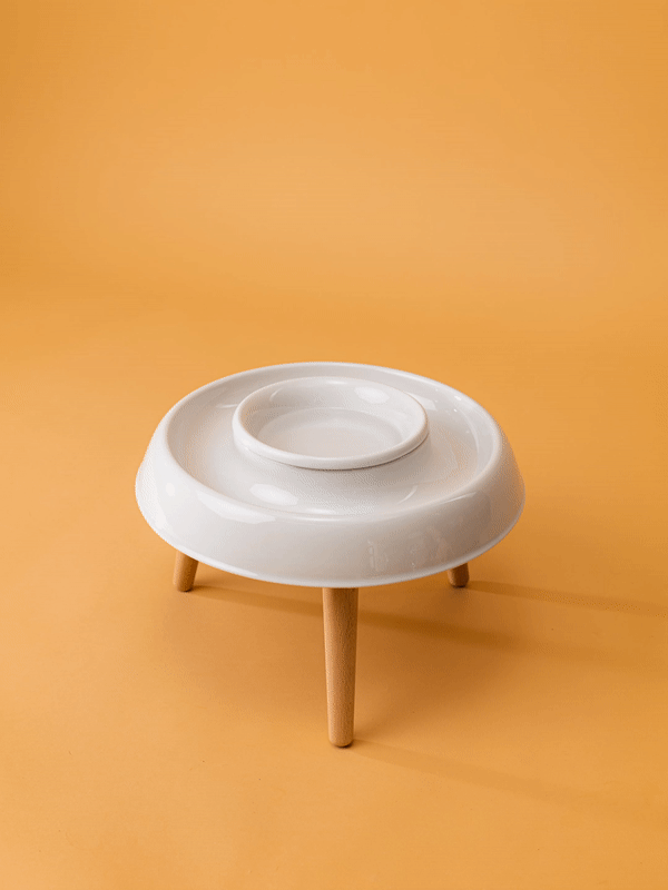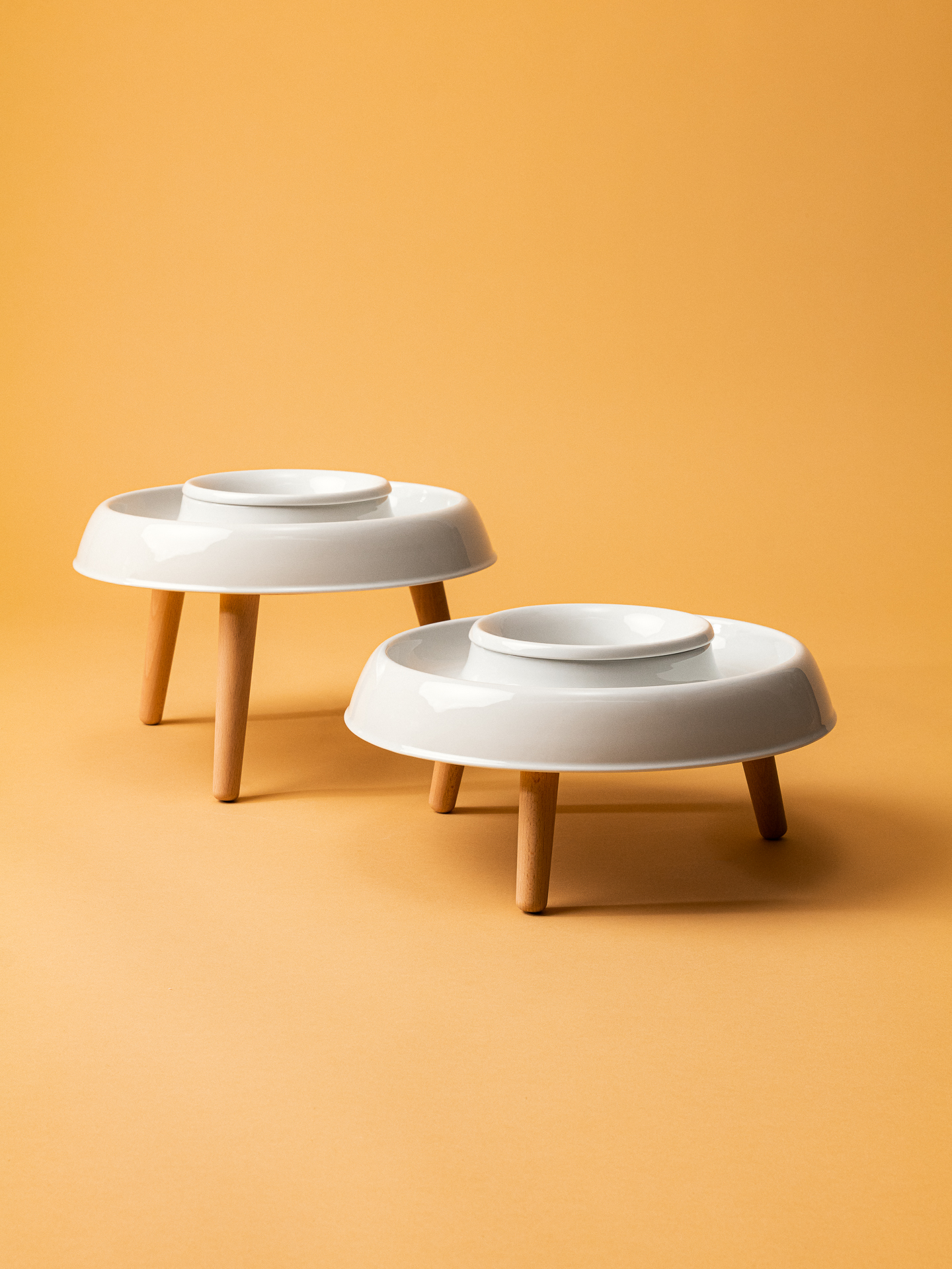 Vyvýšená konstrukce z bukového dřeva a ergonomicky tvarovaný porcelán podporují zdravé držení těla při krmení, je protihltací a zlepšují trávení. Díky dvěma výškám (17 a 23 cm) se miska snadno přizpůsobí velikosti i věku zvířete.