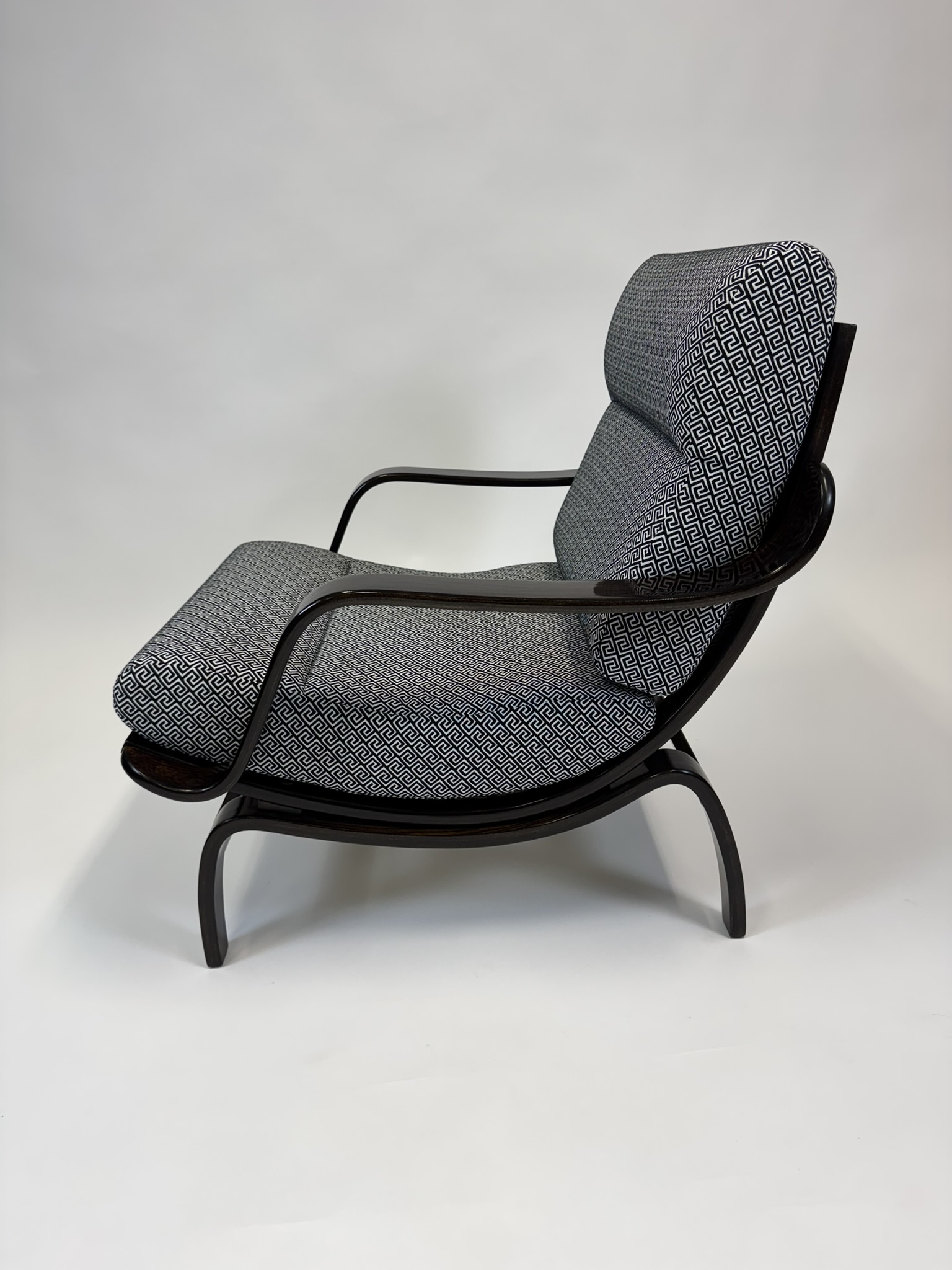 Křeslo je mimořádně elegantní a velmi pohodlné. Výjimečný sběratelský kus s autentickým původem.