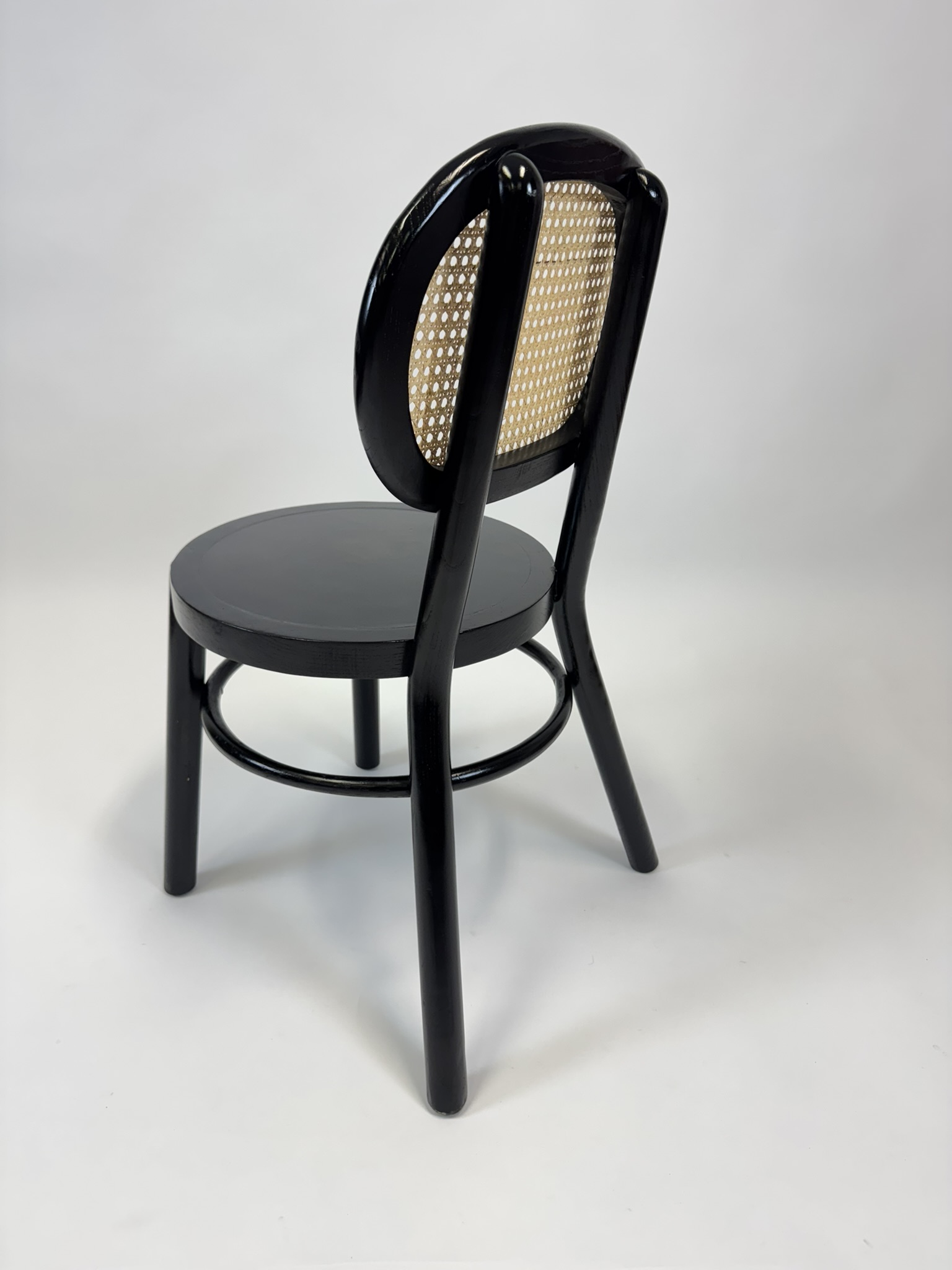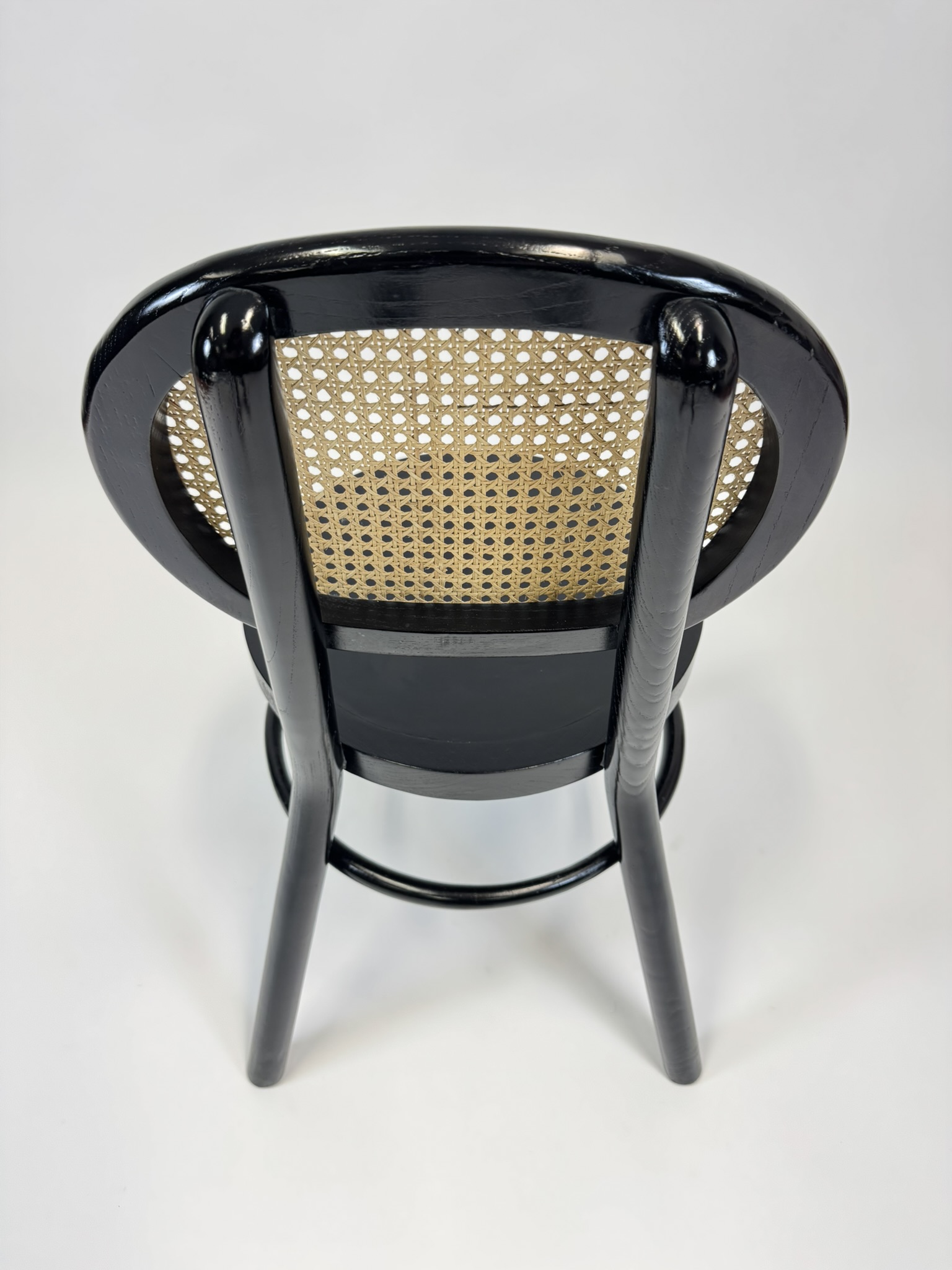 Tento design navazuje na tradici vídeňského ohýbaného nábytku a spojuje ji s moderním pojetím – jednoduché linie, oválné opěradlo a decentní lesklý lak tvoří harmonický celek, který se hodí do interiéru i stylové kavárny.